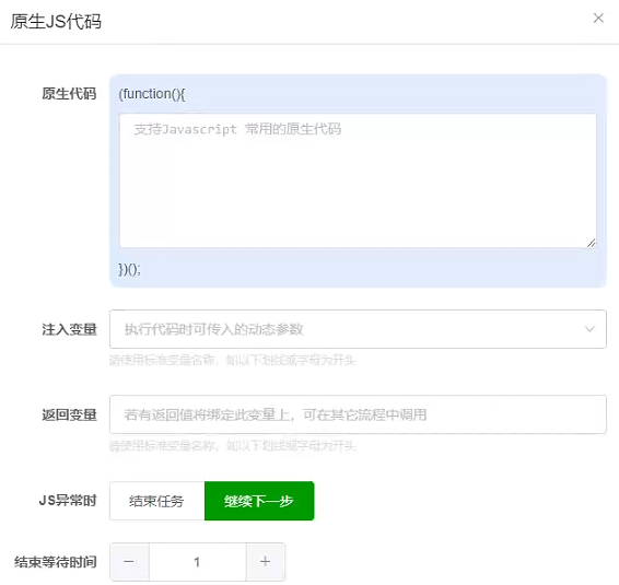 | 结束等待时间 | 执行完后,等待多久执行下一步,单位为秒 |