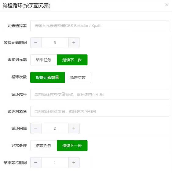 场景举例:如页面里面有很多网页元素拥有相同的代码,可使用该选项去进行循环。